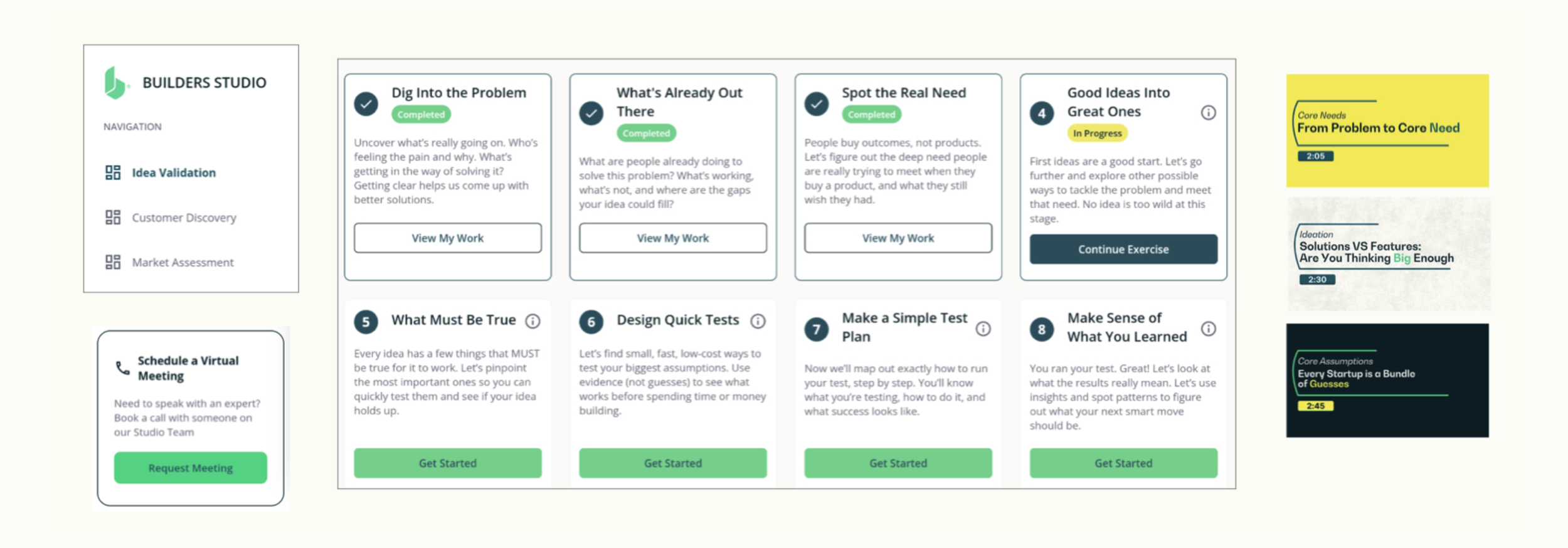 Small-bite learning is built into every step - quick, practical content exactly when you need it - plus access to experienced entrepreneurs who’ve actually started and built successful companies, just a meeting link away.